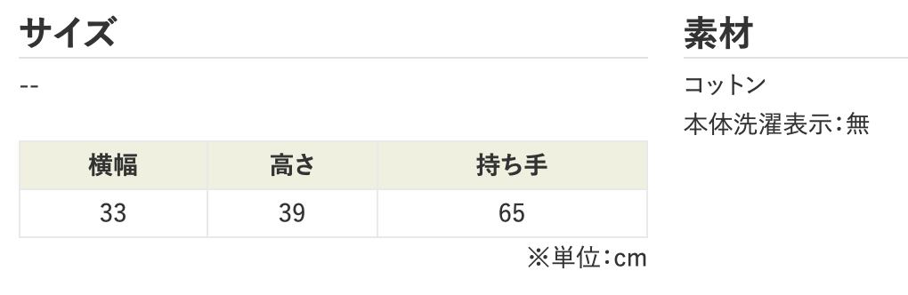 サイズ:高さ39cm×幅33cm 持ち手65cm